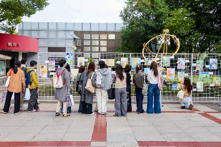 心理健康作品赏:网格展墙上,“予己情书”“爱自己”等主题绘画、手抄报,以生动的艺术语言展现青少年的心理成长思考,让大家直观感受到心理教育的创意表达。
