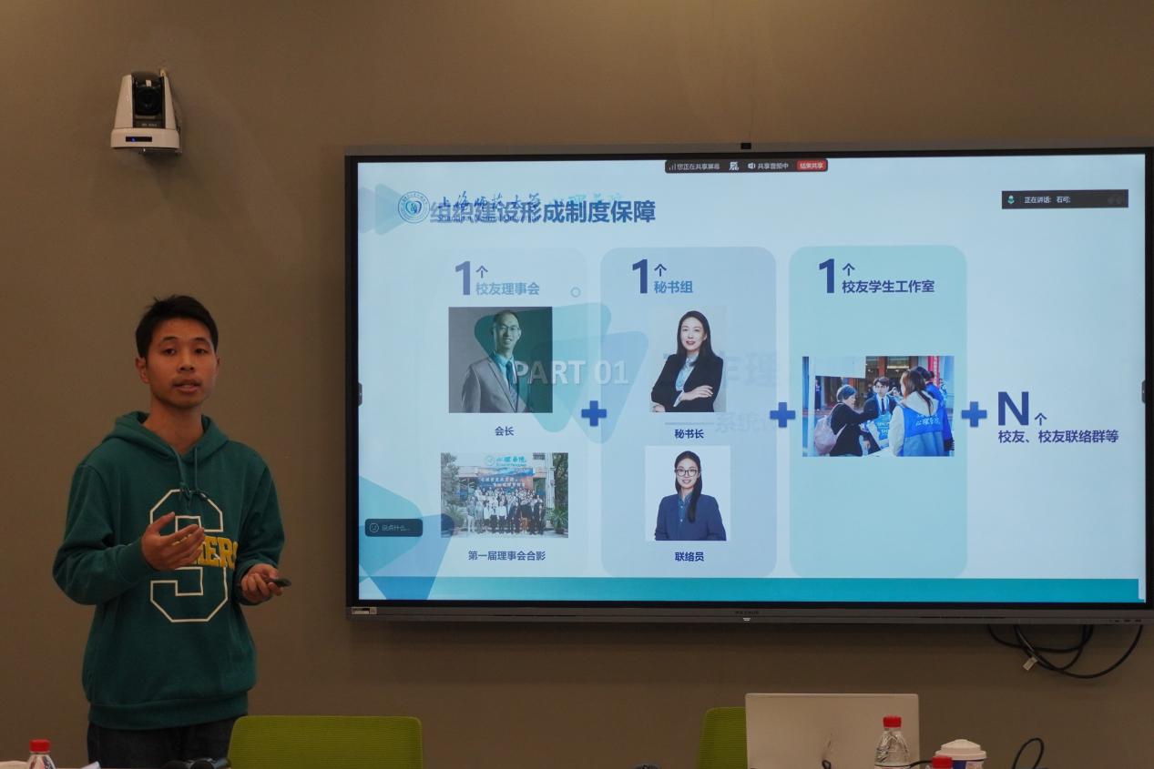 学院团委书记赵明明就年度校友工作情况进行汇报,心理学院秉承着“团在一起”校友工作理念,构建协同联动的校友组织架构,着力营造校友大家庭氛围。过去一年,学院积极发挥校友资源作用,通过邀请校友返校开展职业规划讲座、承办心理健康教育高研班推动校友持续深造、依托校友推动“医教结合”合作拓展学生实践平台等方式,助力在校生培养与校友发展。未来,校友与学院仍将延续双向奔赴,携手共创心理学院美好未来。
