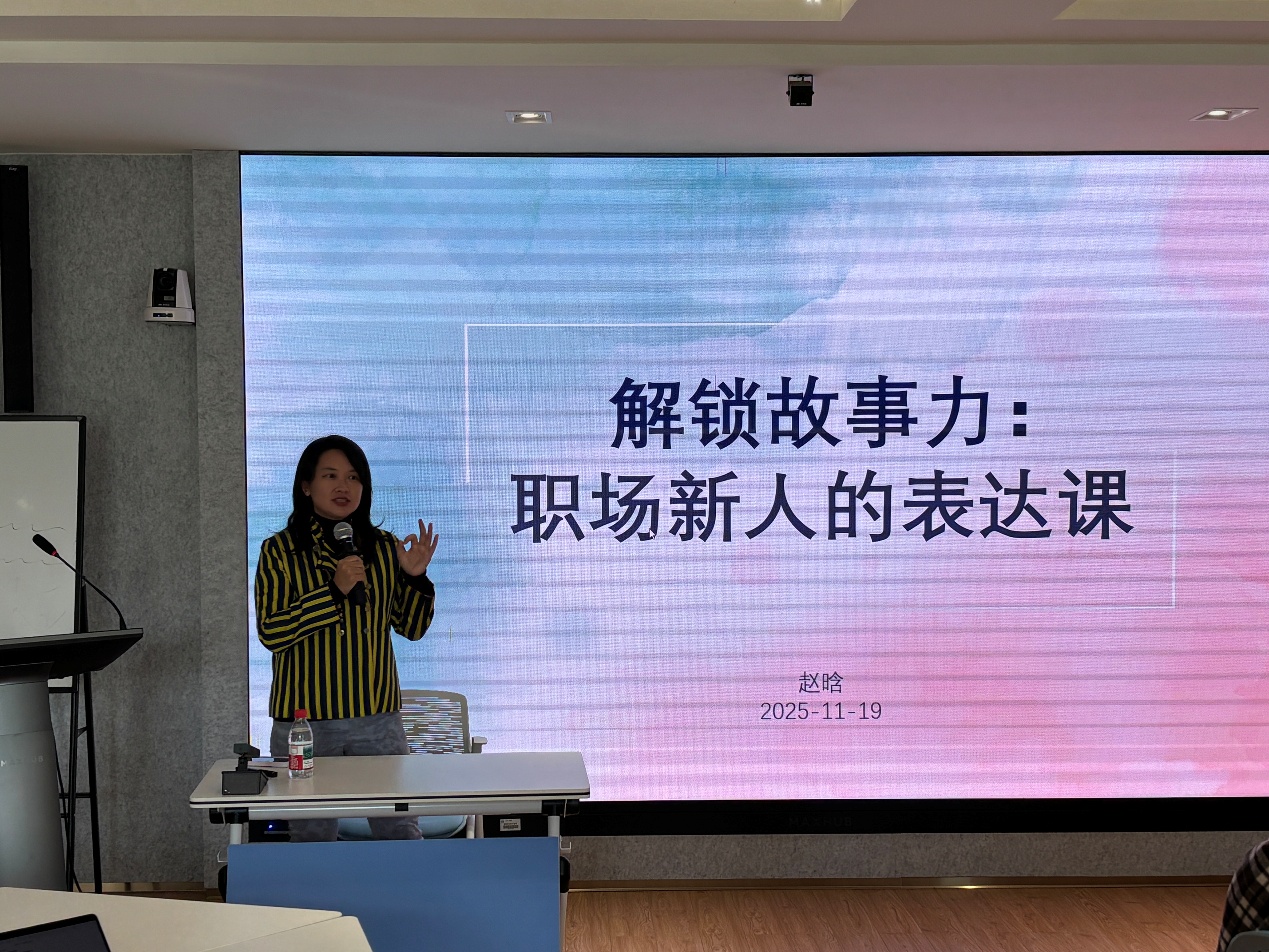 讲座中,赵晗老师结合自身丰富的媒体经验和表达培训实践,以学生普遍关心的求职表达、职业叙事和沟通适应为主线,对毕业生在职业转换期可能面临的挑战进行了系统梳理。她指出,求职阶段的核心不仅是展示经历,更在于理解自身优势并以准确、有逻辑的方式呈现出来。她鼓励同学们以更加开放的方式审视自我,思考个人经历中蕴含的价值,并在表达中呈现出清晰的结构与重点。此外,她还提及适用于面试与工作场景的表达框架,帮助学生理解如何在有限时间内传达关键信息,从而提升沟通效率与专业度。