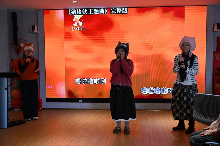 联欢会节目精彩纷呈,教职工们纷纷登台献艺。金哲宇、张畅和石可老师合唱的儿歌串烧《开心向前飞》旋律欢快、喜气洋洋,迅速点燃现场气氛,营造出热烈温馨的迎新氛围。